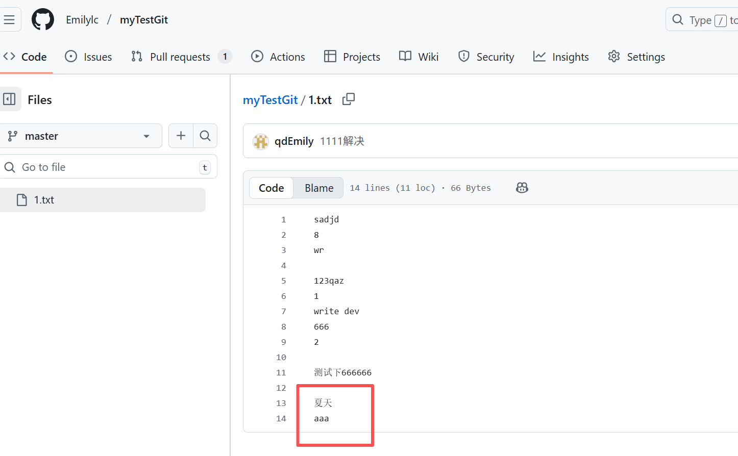 1、在分支上修改文件