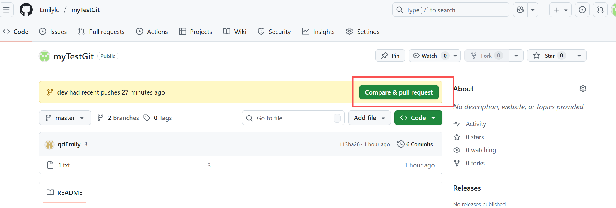 4、登陆GitHub查看分支testbranch有个提交
