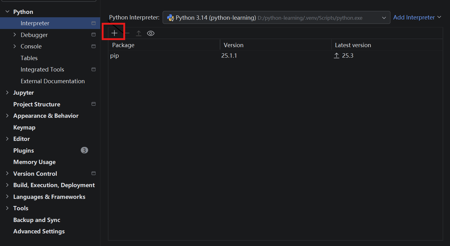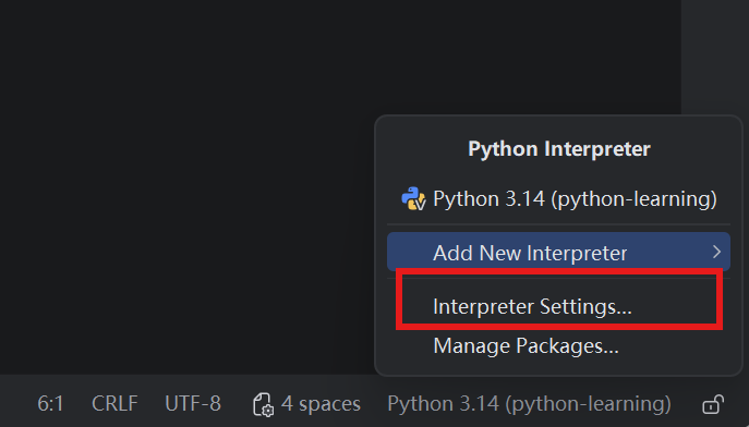 打开File > Settings > Project: 项目名 > Python Interpreter;
