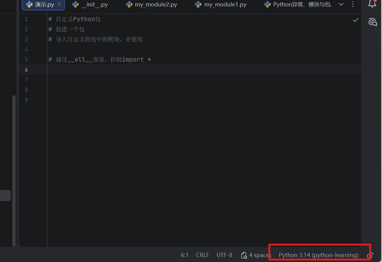 如果直接用from my_package import *导入包内所有模块,可能出现 "模块未定义" 的错误(如开头案例中my_module2无法识别)。