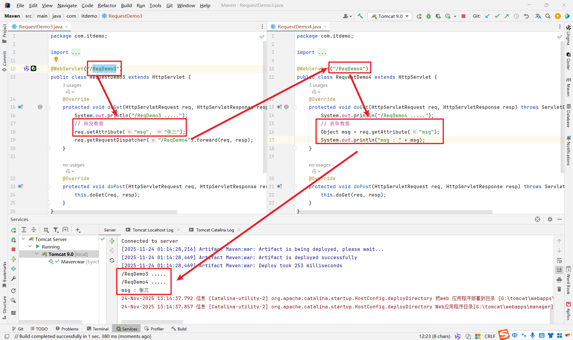 将对象存储到 request 域中,以 key-value 形式保存 | request.setAttribute("username", "zhangsan"); |