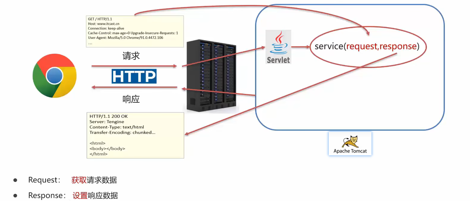 HttpServletRequest对象,并创建HttpServletResponse对象。 -