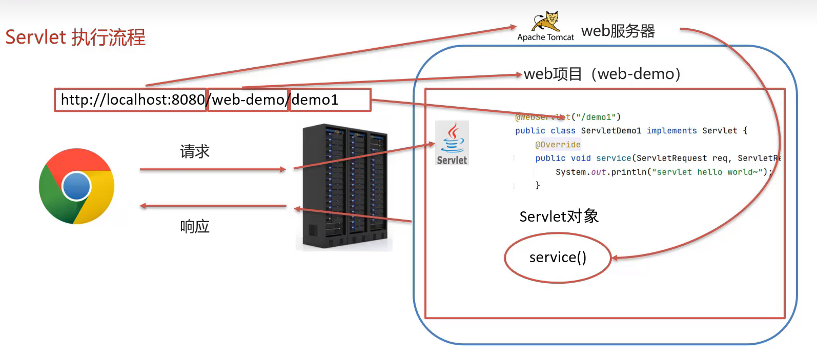 Web服务器创建Servlet对象,并调用Servlet对象中的Service方法