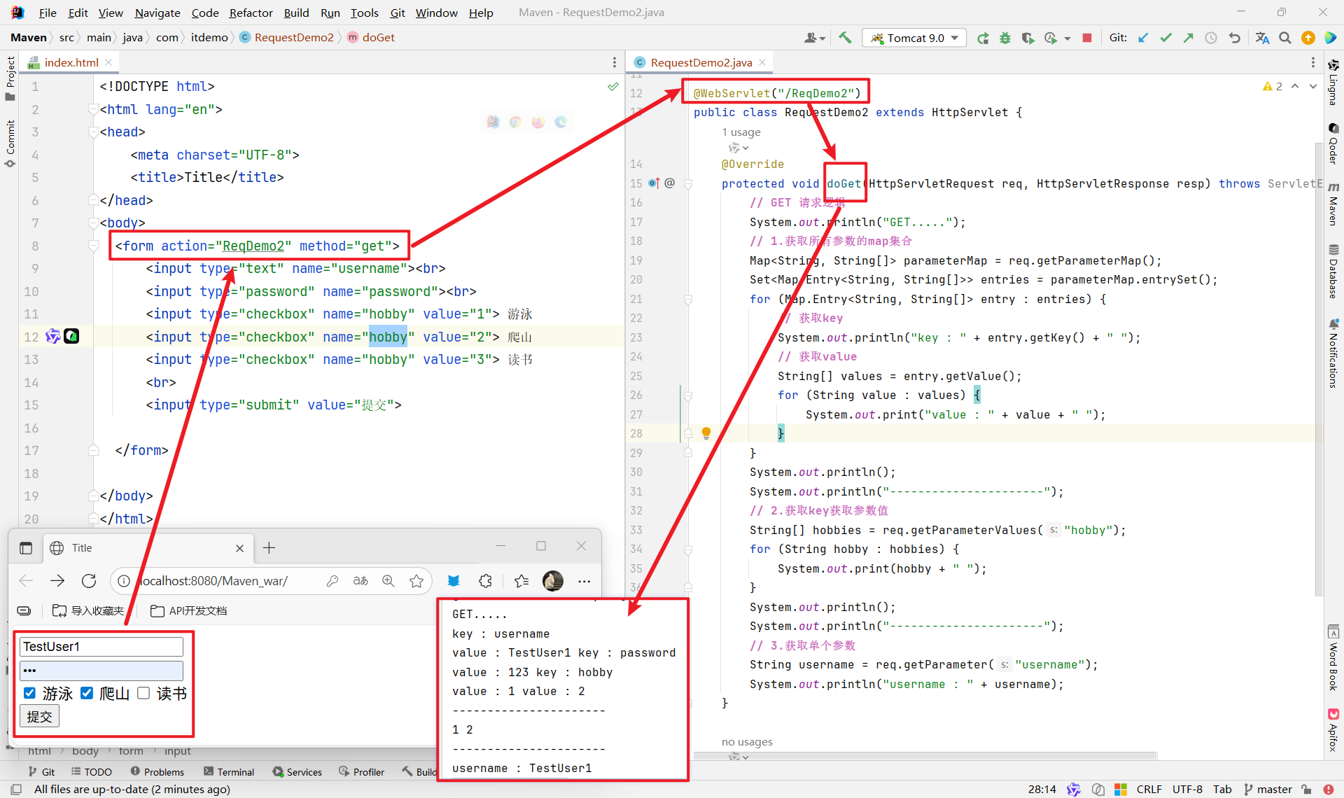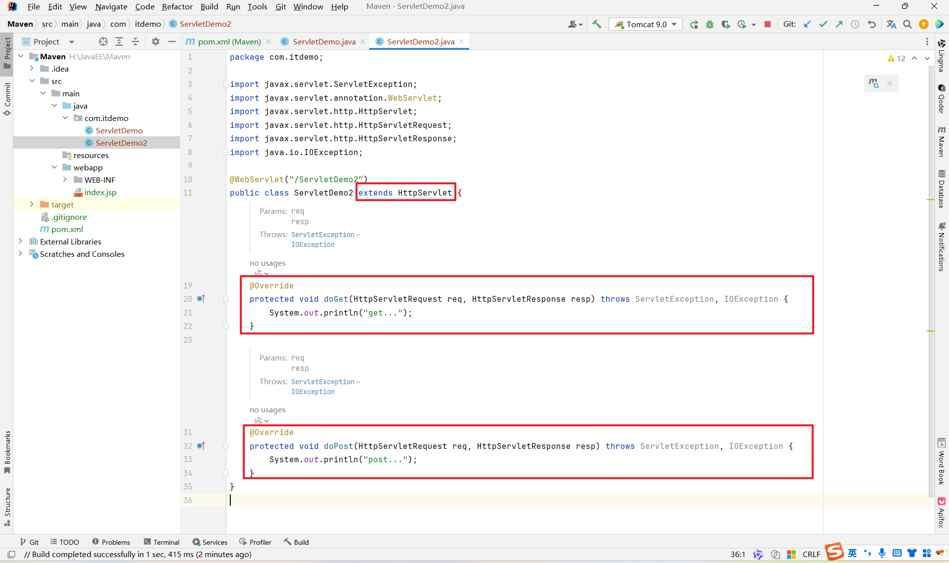 根据请求方法,自动调用对应的 doXXX() 方法: