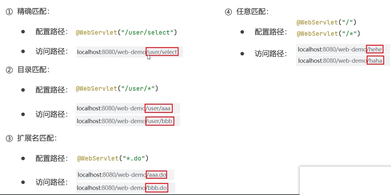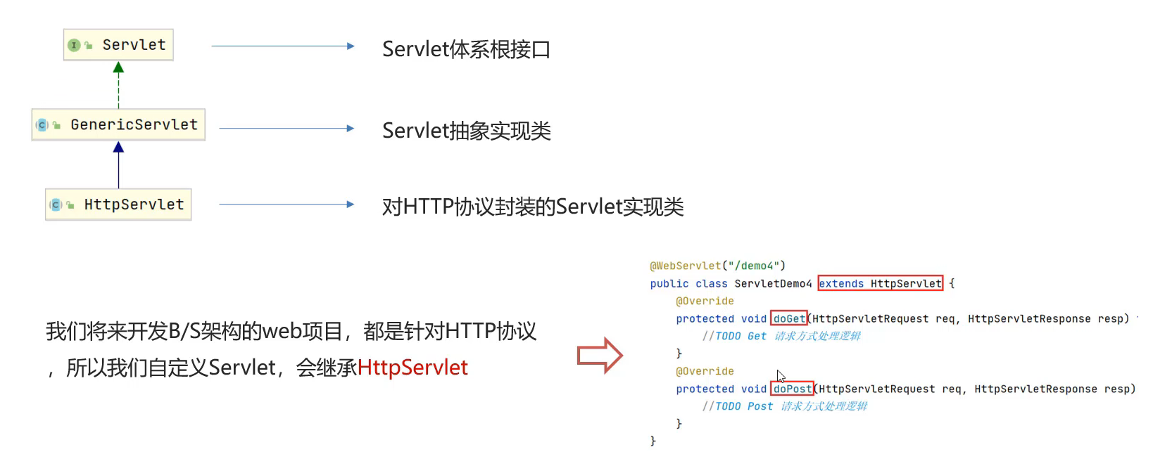 由于这些请求方式的行为差异很大,为了实现更清晰、更安全、更易维护的代码结构 ,HttpServlet 类会根据请求方法自动调用对应的方法(如 doGet()、doPost() 等)。