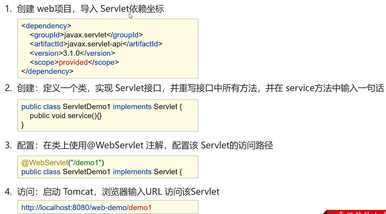 作用:每次 Servlet 被访问时,容器都会调用该方法来处理请求。