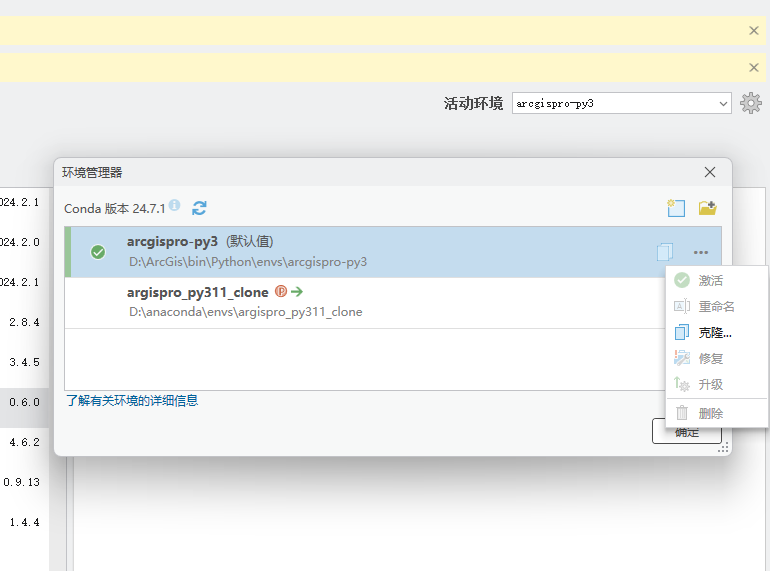 print("⚠️ 警告: 你似乎正在使用 ArcGIS Pro 的默认安装环境,而不是克隆环境。")
