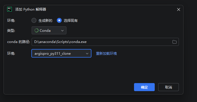 在pycharm里面选择克隆的环境: