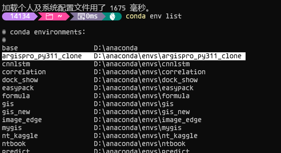 比如我把它克隆到我的系统conda(ArcGIS Pro的conda仅仅是供软件使用)虚拟环境目录了:
