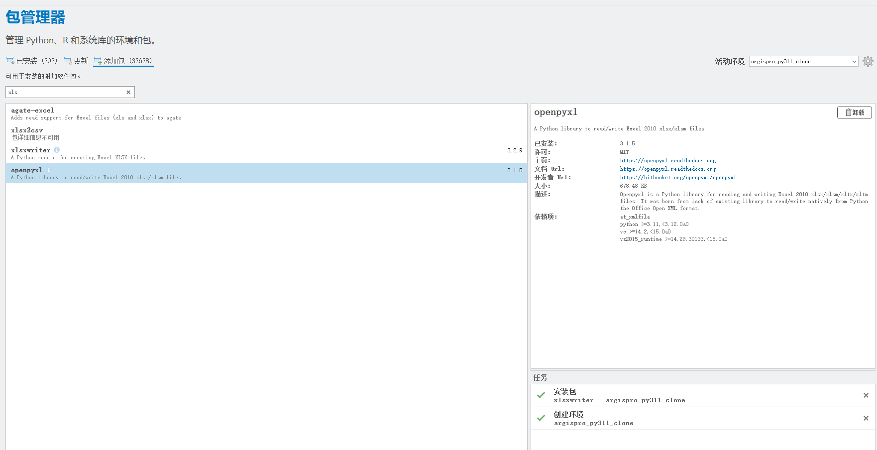 比如我安装了处理excel格式的2各包:xlsxwriter和openpyxl
