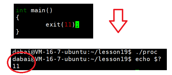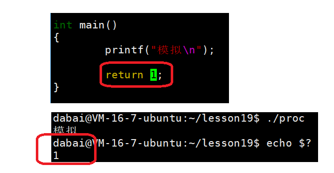 - return 0;这个退出码会被这个进程的父进程获取到,也就是bash进程获取到。