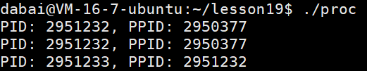 printf("child pid : %d ; ppid : %d \n", getpid(), getppid());