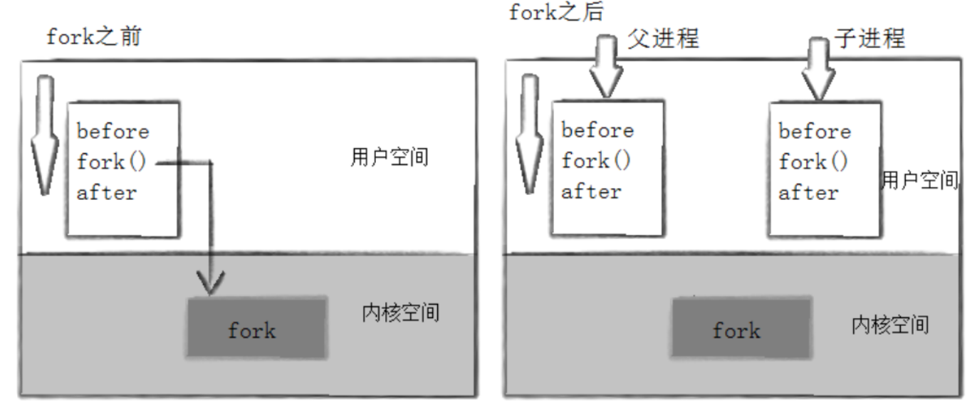 当一个寄存调用fork函数后,就有存在两个二进制代码相同的进程,且运行到相同地址。