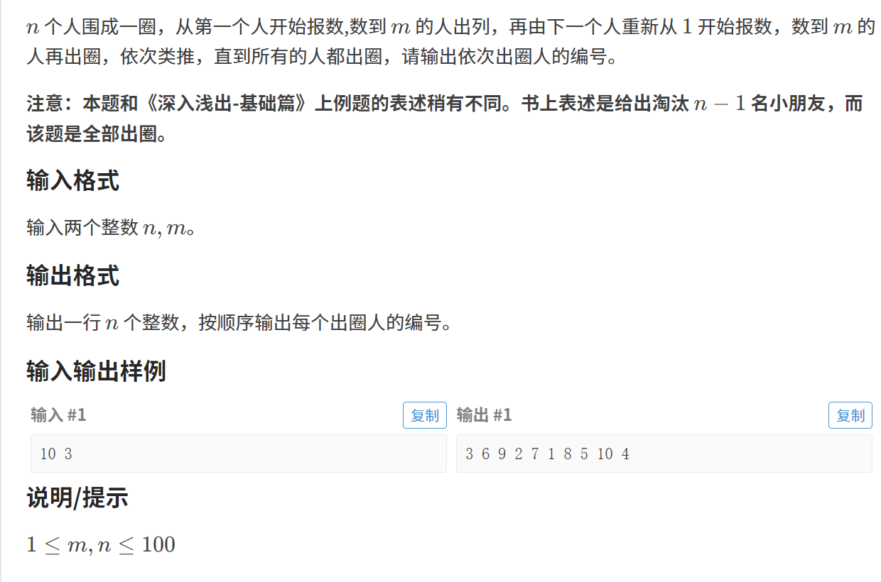 for (int i = 1; i <= n; i++) // 执行n次出圈操作