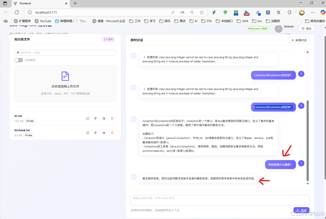 这是系统的核心价值所在:基于检索增强生成的对话。