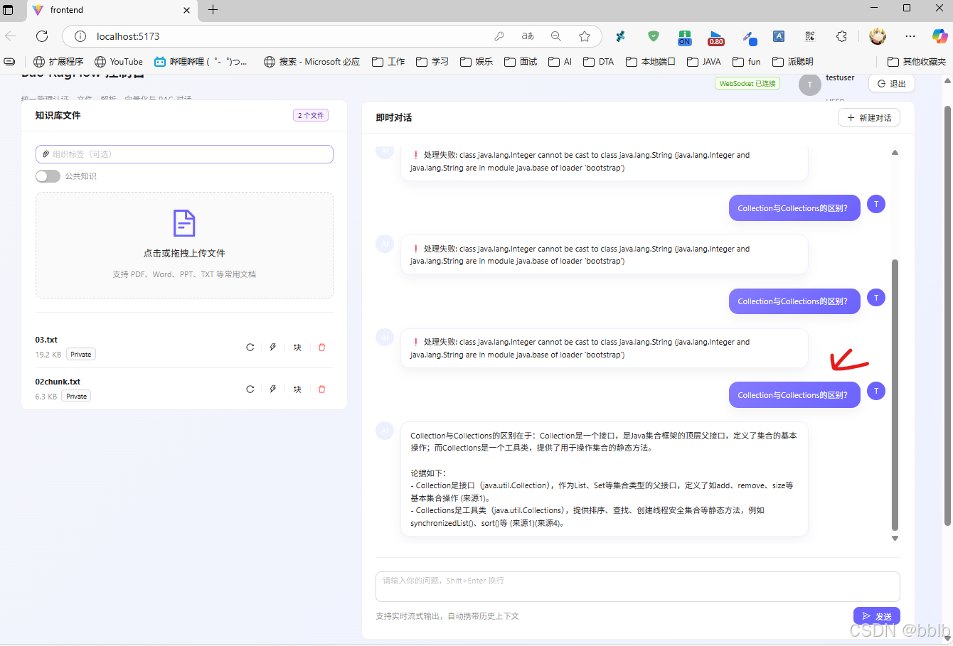 - 交互层面:完成了 WebSocket 全双工流式对话。