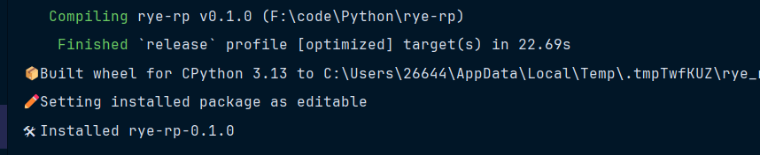 Warning: Couldn't find the symbol `PyInit__lowlevel` in the native library. Python will fail to import this module. If you're using pyo3, check that `#[pymodule]` uses `_lowlevel` as module name 📦 Built wheel for CPython 3.13 to F:\code\Python\rye-rp\target\wheels\rye_rp-0.1.0-cp313-cp313-win_amd64.whl