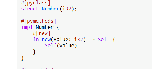 导出函数使用的是pyfunction,那导出类自然使用的是pyclass。