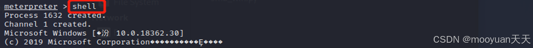在Meterpreter会话中直接输入 shell 即可切换到目标系统的命令行环境(如Windows的cmd或Linux的bash),从而执行原生系统命令。