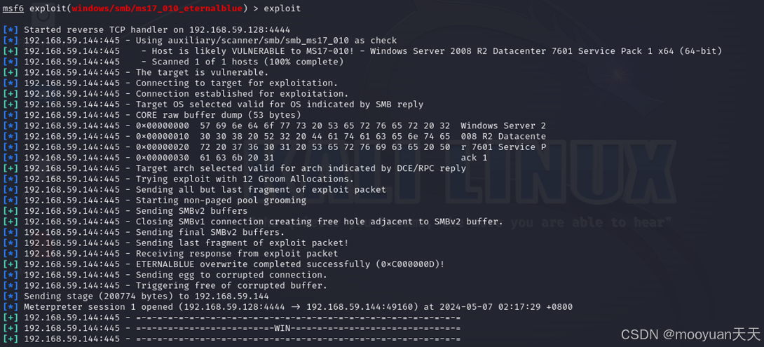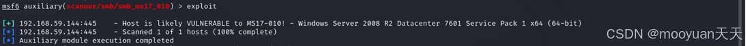 [*] 192.168.59.144:445 - Using auxiliary/scanner/smb/smb_ms17_010 as check