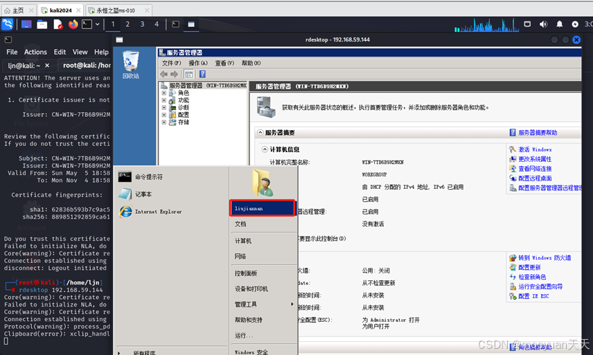 网络环境 :攻击机(Kali Linux)和靶机(Windows Server)位于同一个虚拟子网(