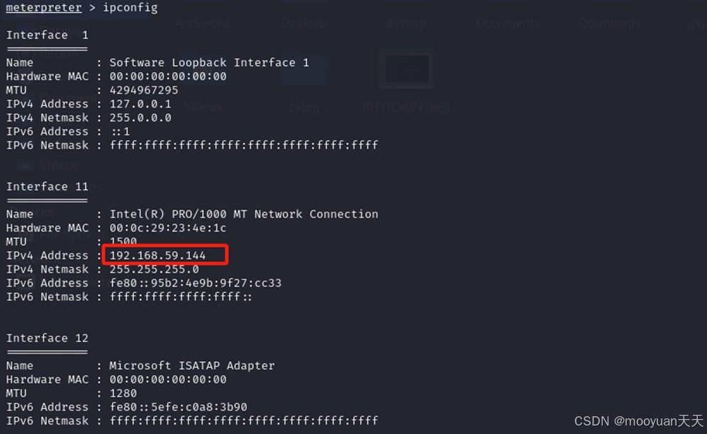本文使用的渗透环境由攻击机Kali Linux(192.168.59.128)和靶机Windows Server(192.168.59.144)组成。两台主机均接入同一虚拟子网(192.168.59.0/24),如下所示。