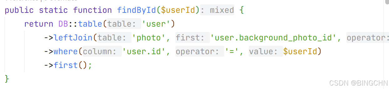 最后找到个这个,可以看到它使用了leftjoin连表查询,也就是说把photo和user表连一起查;