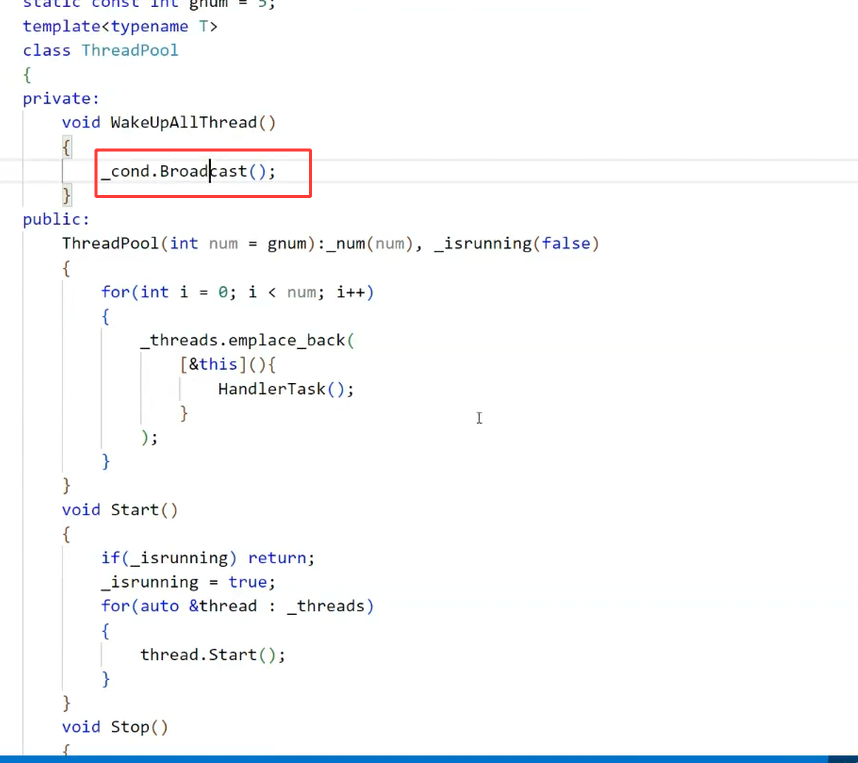 因此,在停止线程池时,必须主动唤醒所有正在等待的线程。这通常通过条件变量(Condition Variable)的 notify_all() 方法来实现。