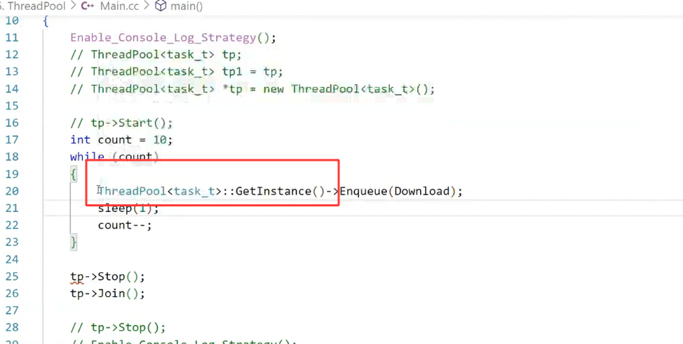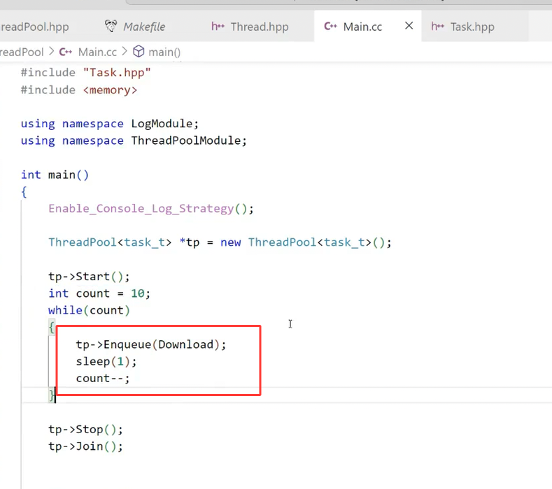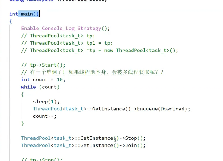 下面是一个简单的 main 函数,展示了如何创建和使用线程池。