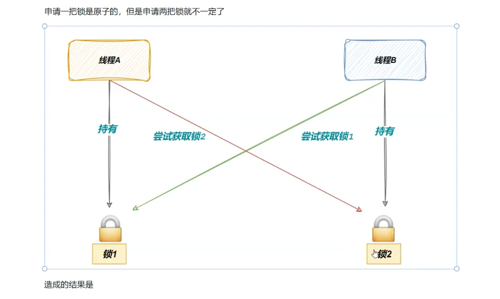 - 接下来,线程A尝试获取锁2,但锁2已被线程B持有,所以线程A阻塞。