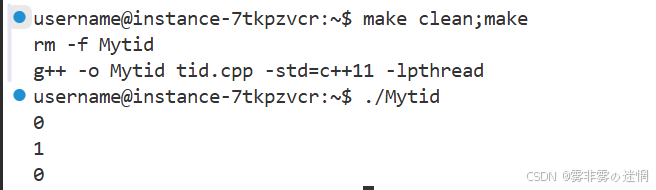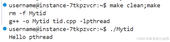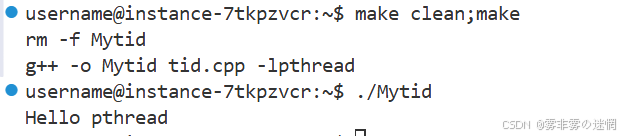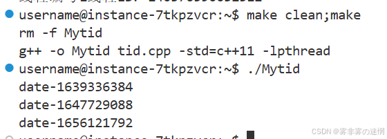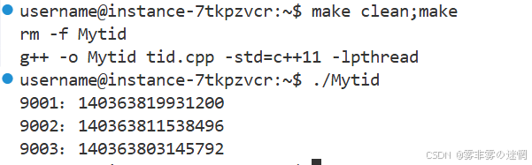 此时 tid 就接收了底层系统调用返回的线程 ID,例如:(注意需要指定使用线程库)