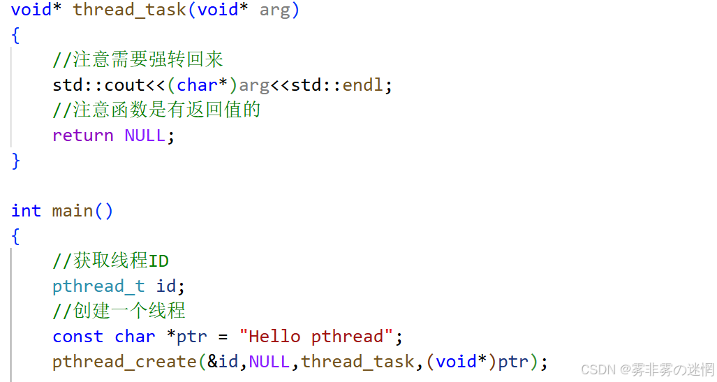 **第二个参数:**设置线程的属性(这个后面再谈,先设置为NULL)