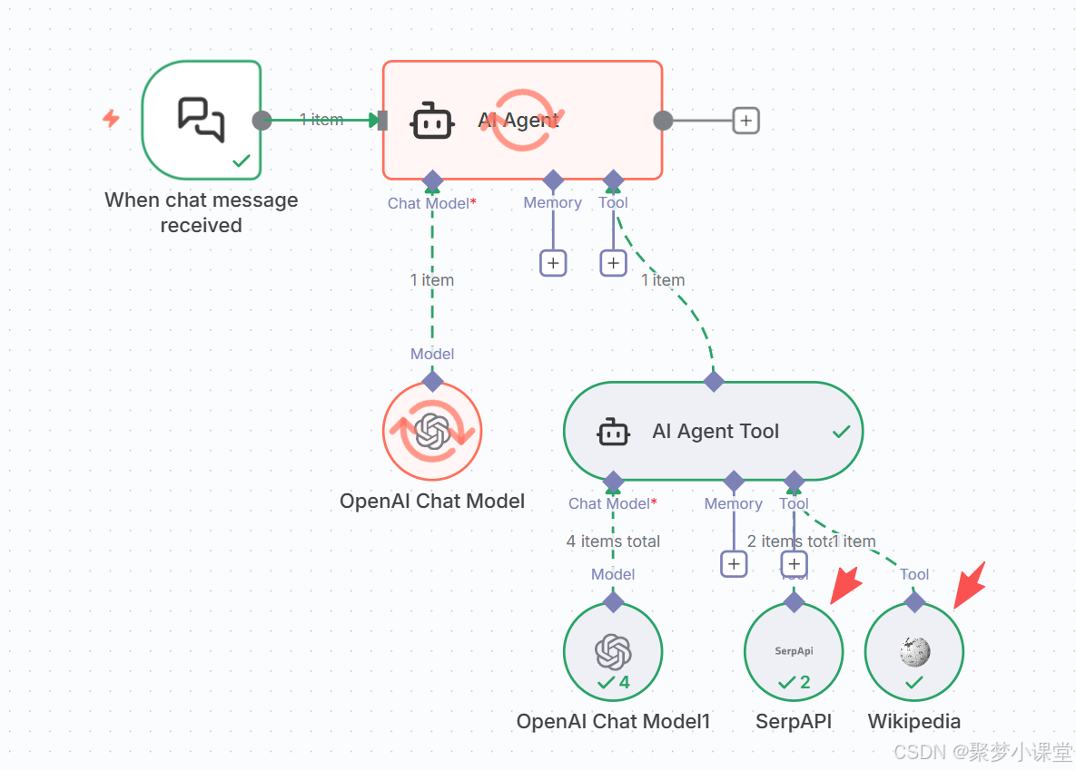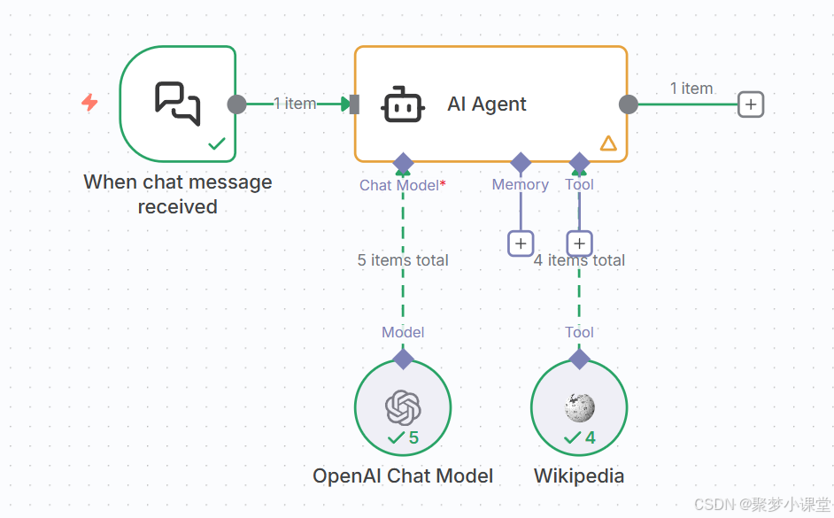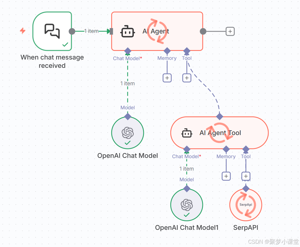 这次主要分享一下AI Agent节点,如何能自主调度工具来实现模型的能动性。