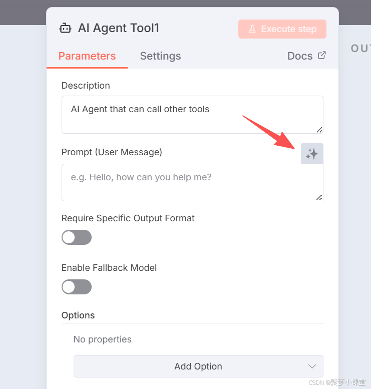 链接完成后,需要展开Ai agent tool这个节点,点击下这个🌟按钮: