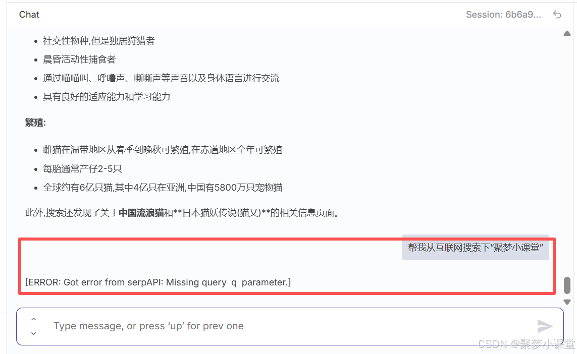 说明模型知道要使用这个工具,但是并没有给他搜索词。