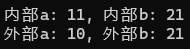 cout << "内部a: " << a << ", 内部b: " << b << endl;
