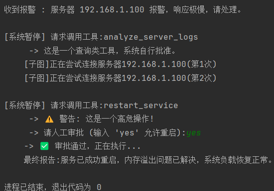 user_approval = input(" -> 请人工审批 (输入 'yes' 允许重启):")