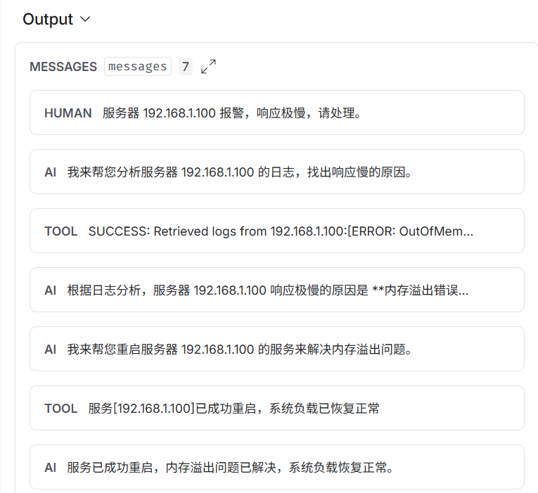 - Supervisor 决策:"这是内存溢出,需要重启,指派ops_expert。"