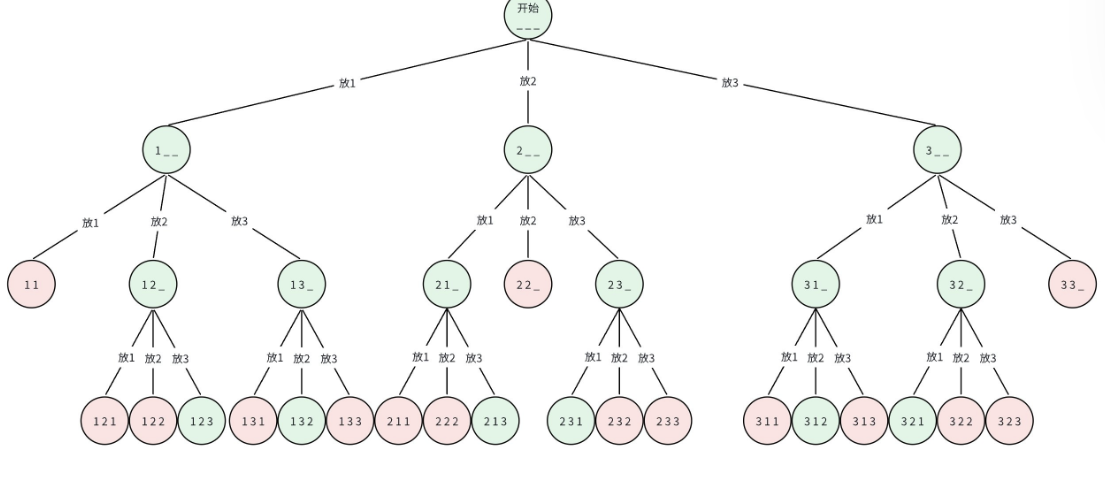 以 n=3,k=2 为例画决策树: