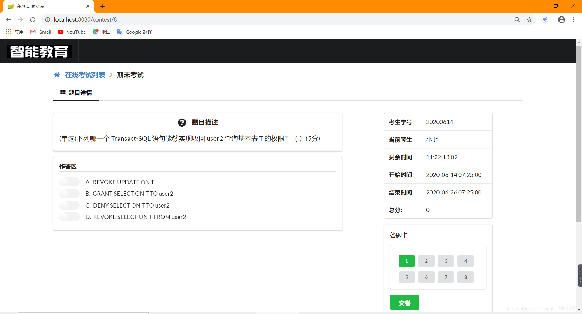 `state` int(8) NULL DEFAULT 1 COMMENT '0表示未考试题目,1表示已考试题目',