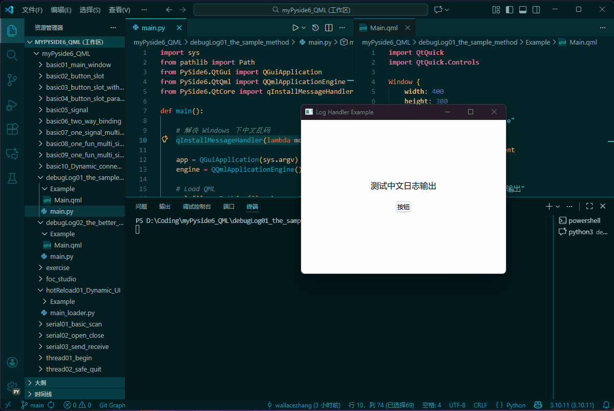 - gitee: https://gitee.com/wallace89/myPyside6_QML/tree/main/debugLog01_the_sample_method