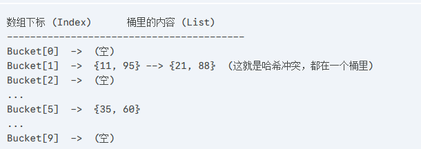 myMap.insert(11, 95); // 11 % 10 = 1,去1号桶
