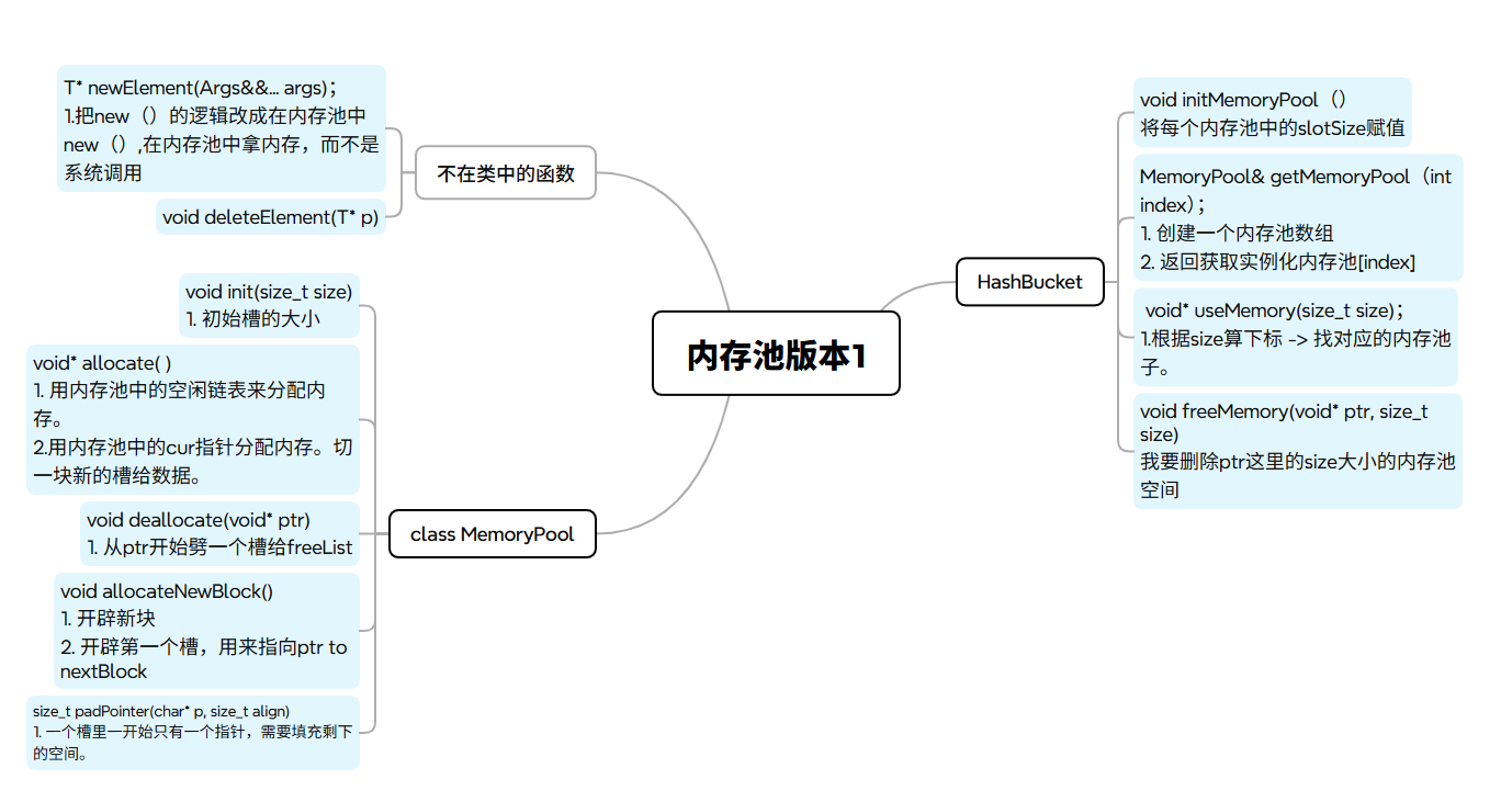 如果是在memoryPool类中写,就不能体现缓存池的差异化了。而且本身缓存池就是哈希桶中的桶,又哈希桶来进行管理。