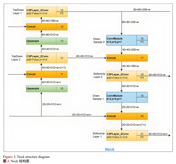 - YOLOv8目标检测模型的颈部网络位于骨干与头部网络间,是关键组成部分。其采用优化的PAN-FPN结构变体,通过自下而上与自上而下的路径聚合,融合骨干网络不同阶段特征图,让浅层位置细节与深层语义信息互补。同时集成SPPF模块,在多感受野下聚合信息,并可能采用深度可分离卷积、残差连接等设计,平衡性能与速度、缓解梯度消失。该网络能为头部精准提供适配特征,有效提升车间小物体的检测准确性(如图3所示)。
