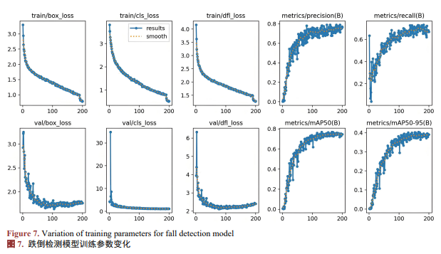 人员检测模型训练参数变化、跌倒检测模型训练参数变化如图6、图7所示。