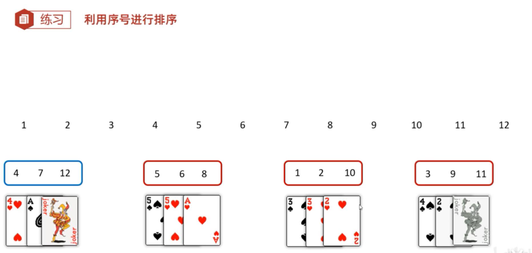 看牌,拿着序号在最开始的Map集合中去找对应的值即可。此时的排就是有序了。