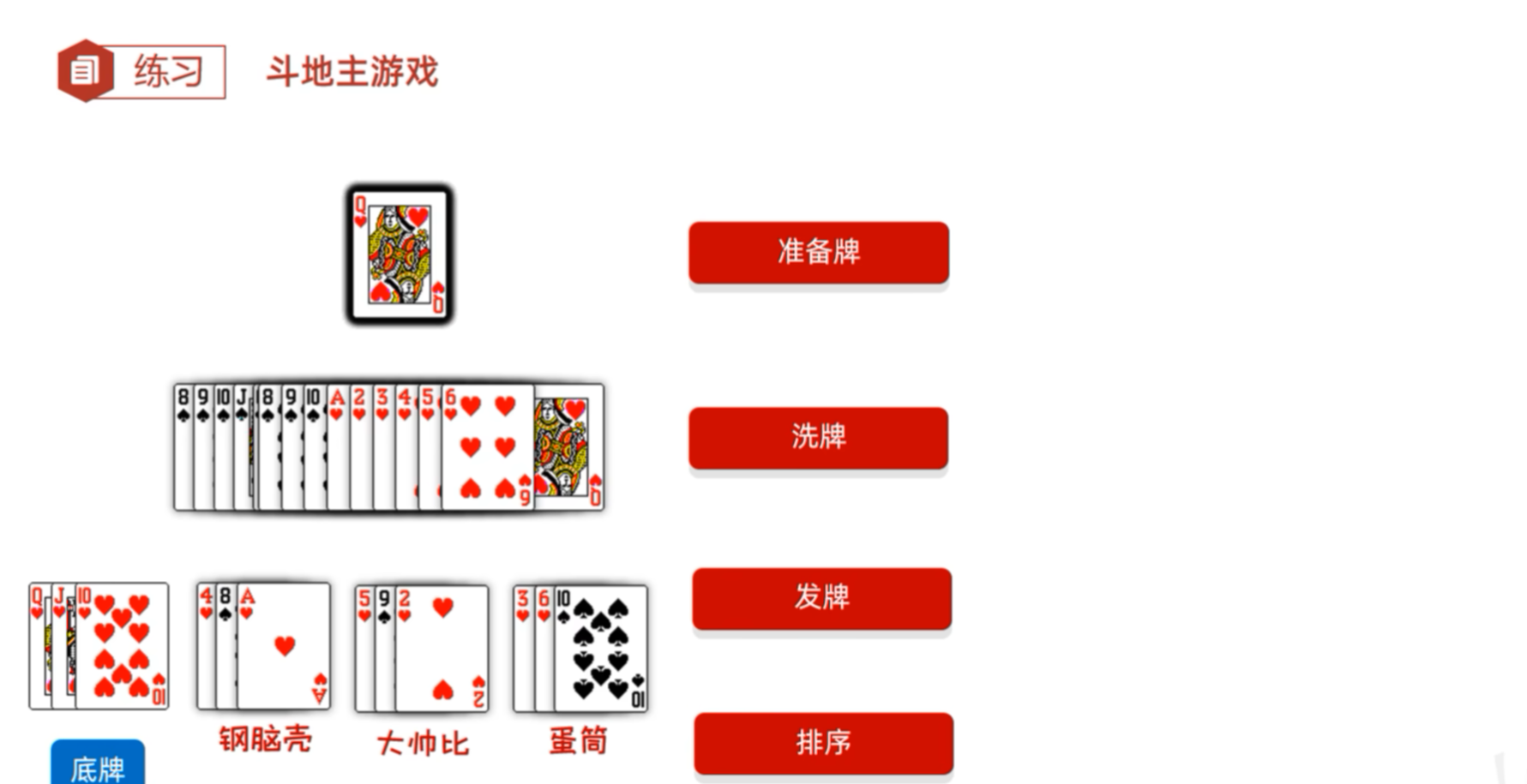 第二步:有了牌之后,需要洗牌。洗出三张底牌。