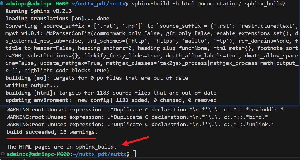 OK ,分析完 sphinx-build 命令的作用,然后可以看到网页 HTML 构建成功