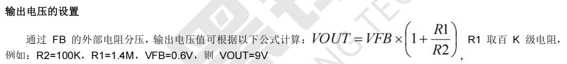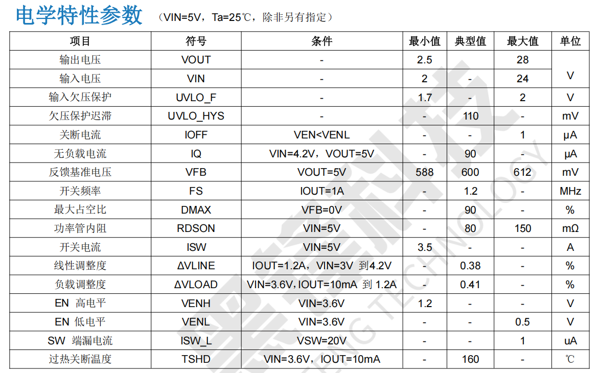通过外部分压电阻灵活设定输出电压值。 - 反馈基准电压 :0.6V ±2%