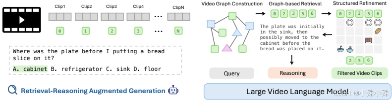 比如问"这个片段里平底锅是干净的吗?""有人在使用平底锅吗?"只有通过验证的片段才会被用来生成最终答案。这个方法消除了无关信息的干扰,在实验中解决了40%的失败情况------就是那种"正确答案就在眼前,但AI就是答错"的问题。
